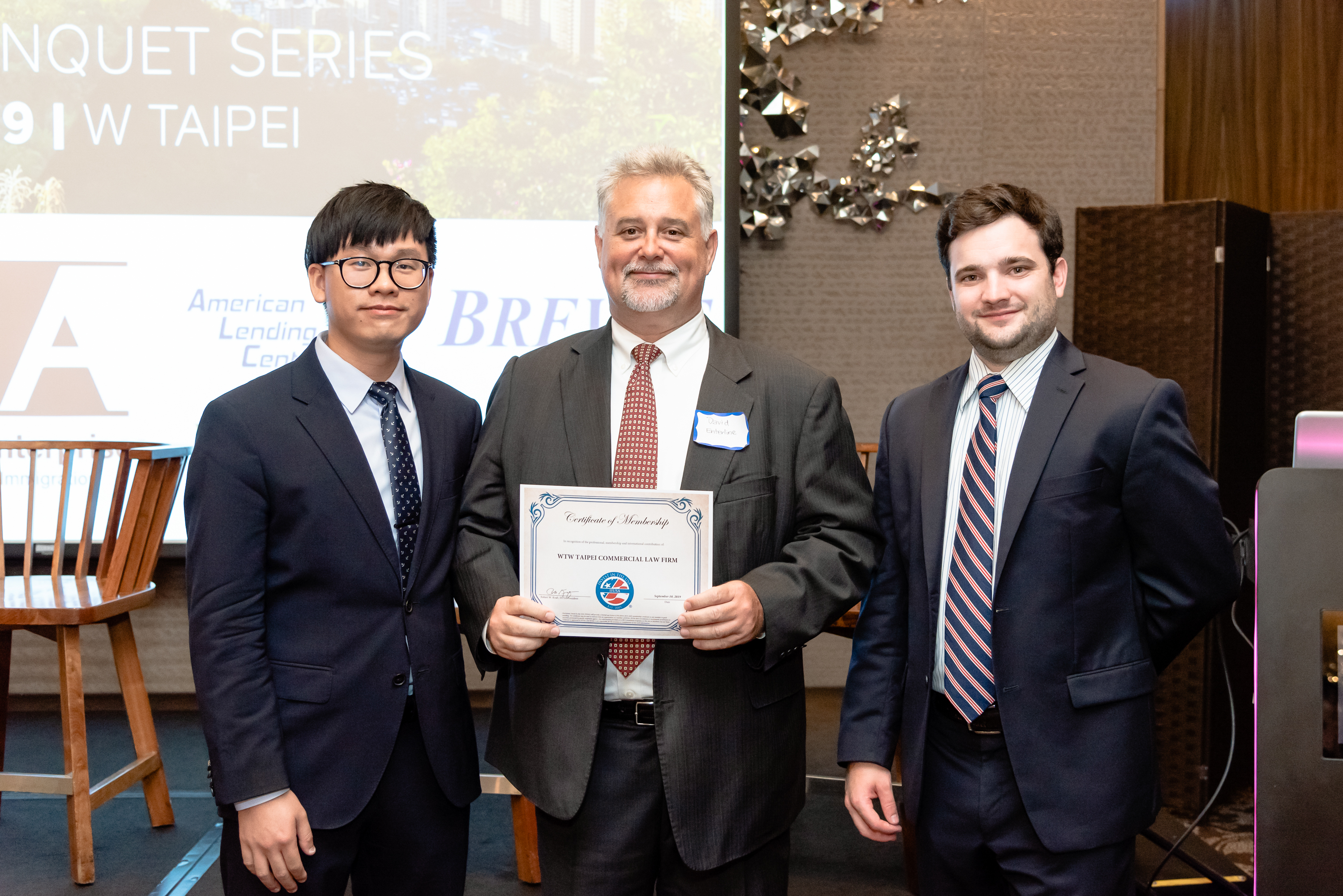 中天國際移民顧問有限公司的殷大為總裁在投資美國協會(IIUSA)於2019年9月10日在台北舉辦的全球宴會上從該協會的McKenzie Penton 先生和Lee Li先生手上接過會員證書。
