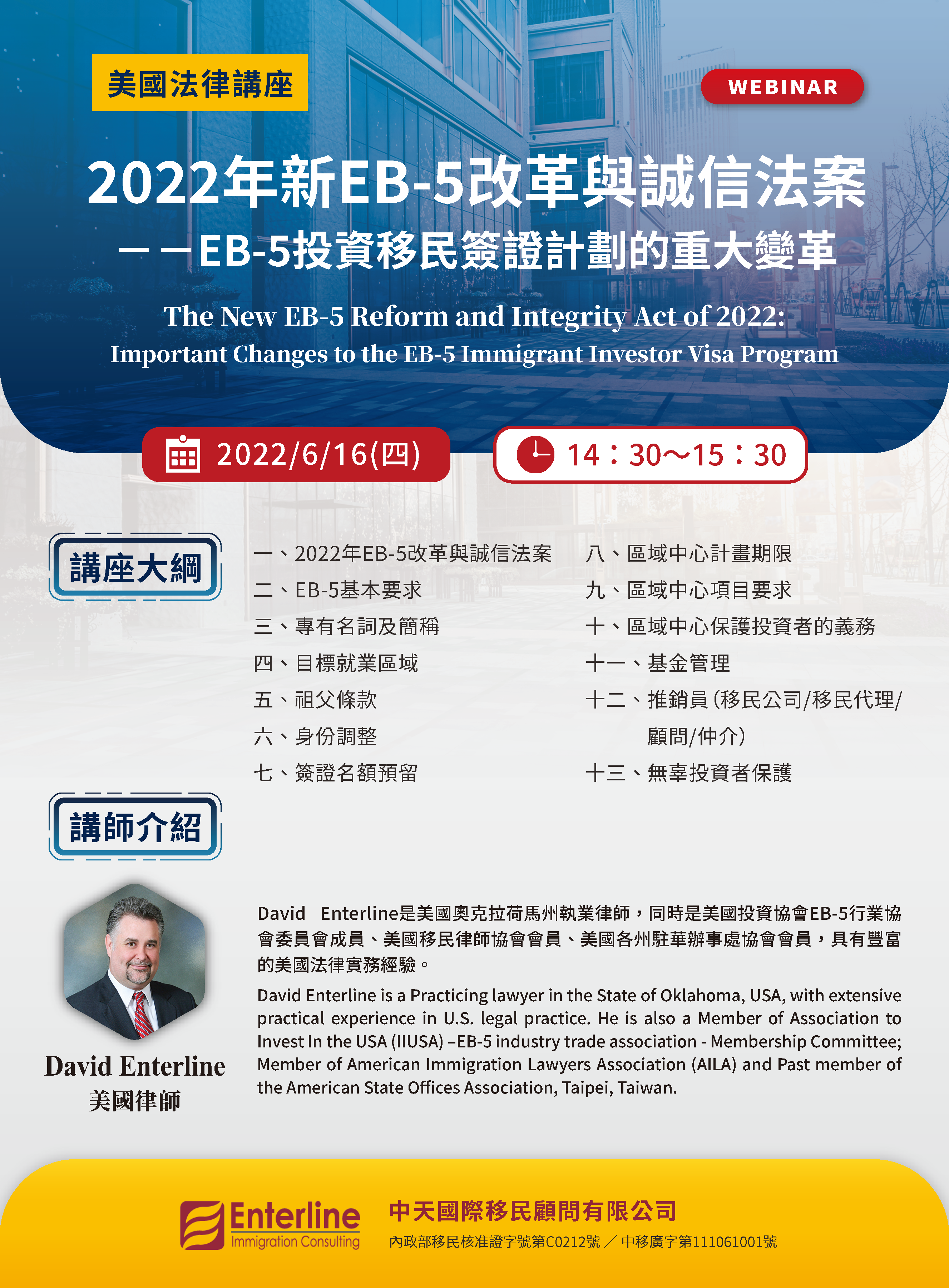 2022年6月 | EB-5線上講座, 台北, 台灣